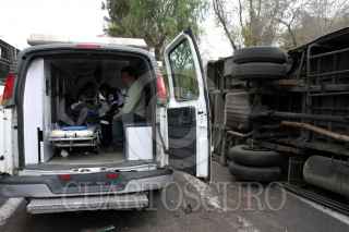 MÉXICO, D.F.; 24ENERO2007.- Unos paramedicos atienden a los heridos por la volcadura de un micro por exceso de velocidad. FOTO:PEDRO MARRUFO/CUARTOSCURO.COM