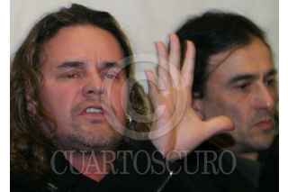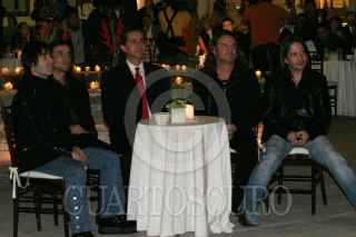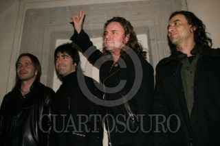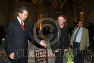 MEXICO, D.F. 25ENERO2007.- Juan Rafael Elvira Quesada, secretario de medioa ambiente y recursos naturales conversa con los integrantes del grupo Mana durante el festejo del decimo aniversario la fundación Selva Negra. FOTO: NELLY SALAS/CUARTOSCURO.COM