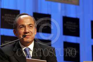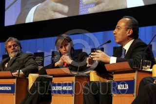 DAVOS, SUIZA, 26ENERO2007.- El presidente de los Estados Unidos Mexicanos, Felipe Calderón Hinojosa, durante la durante la sesion plenaria " America Latina amplia sus horizontes". FOTO: ALFREDO GUERRERO/CUARTOSCURO.COM