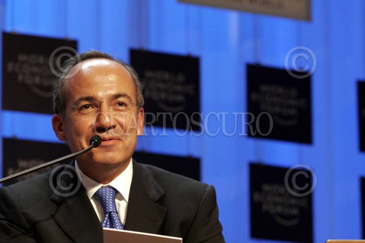 DAVOS, SUIZA, 26ENERO2007.- El presidente de los Estados Unidos Mexicanos, Felipe Calderón Hinojosa, durante la durante la sesion plenaria " America Latina amplia sus horizontes". FOTO: ALFREDO GUERRERO/CUARTOSCURO.COM