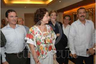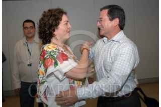 MERIDA, YUCATAN, 26ENERO2007.- La candidata al gobierno de Yucatán, Ivon Ortega Pacheco saluda al presidente del PRI, Mariano Palacios Alcocer, su llegada a la sesión plenaria del grupo parlamentario del PRI. FOTO:FRANCISCO MARTINEZ/CUARTOSCURO.COM