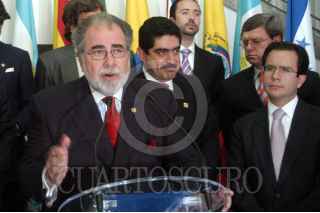 MÉXICO D.F. 26NERO2007.- Marcelino Miyares, viceprecidente de accón política de ODCA, Manuel Espino presidente nacional del PAN y Cesar Nava, secretario particular del presidente de la república, quien acudio en representación de este, al momento de cortar el listón durante la inauguración durante la inaugiuración de la nueva cede del Organización Democrata Cristiana de América. FOTO: GUILLERMO PEREA/CUARTOSCURO.COM