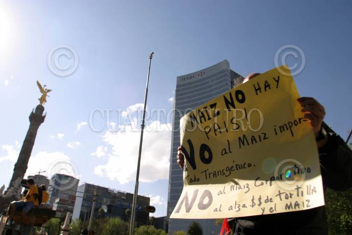 MÉXICO, D.F., 31ENENRO2007.- Organizaciones sociales y campesinas marcharon por en contra del alza a los precios de los productos de la canasta básica como la tortilla, del Angel de la Independencia a el Zócalo. FOTO: MOISÉS PABLO/CUARTOSCURO.COM