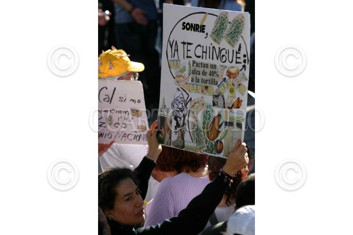 MÉXICO, D.F., 31ENENRO2007.- Organizaciones sociales y campesinas marcharon por en contra del alza a los precios de los productos de la canasta básica como la tortilla, del Angel de la Independencia a el Zócalo. FOTO: MOISÉS PABLO/CUARTOSCURO.COM