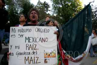MÉXICO, D.F., 31ENENRO2007.- Organizaciones sociales y campesinas marcharon por en contra del alza a los precios de los productos de la canasta básica como la tortilla, del Angel de la Independencia a el Zócalo. FOTO: MOISÉS PABLO/CUARTOSCURO.COM