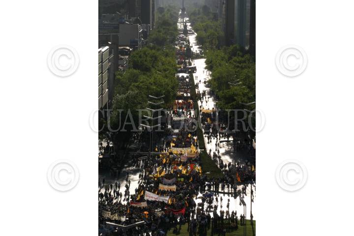 MÉXICO, D.F., 31ENENRO2007.- Organizaciones sociales y campesinas marcharon por en contra del alza a los precios de los productos de la canasta básica como la tortilla, del Angel de la Independencia a el Zócalo. FOTO: MOISÉS PABLO/CUARTOSCURO.COM