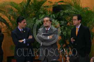 MÉXICO, D.F., 01FEBRERO2007.- Juan Camilo Mouriño, jefe de la oficina de Politicas Públicas de la Presidencia, Maximilio Cortazar, Comunicación Social y Cesar Nava, Secretario Particular, durante un acto del presidente en la residencia oficial de los Pinos. FOTO: MOISÉS PABLO/CUARTOSCURO.COM