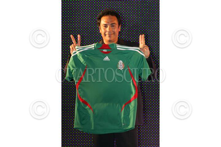 MÉXICO, D.F., 01FEBRERO2007.- Hugo Sánchez, director técnico de la Selección Nacional, escribió su sueño en una playera del representativo nacional que recorrerá todo el país y sobre la cual, los aficionados podrán estampar sus firmas. FOTO: ISAAC ESQUIVEL/CUARTOSCURO.COM