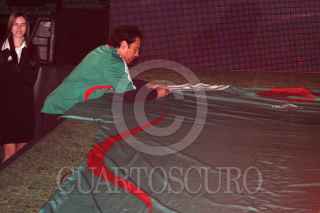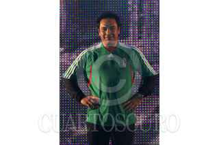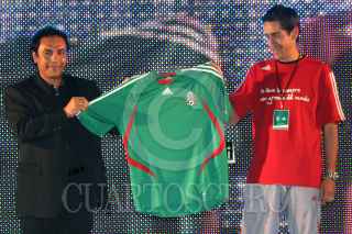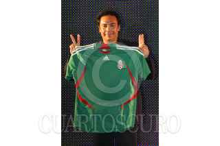 MÉXICO, D.F., 01FEBRERO2007.- Hugo Sánchez, director técnico de la Selección Nacional, escribió su sueño en una playera del representativo nacional que recorrerá todo el país y sobre la cual, los aficionados podrán estampar sus firmas. FOTO: ISAAC ESQUIVEL/CUARTOSCURO.COM