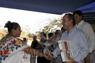 YAXCABA, YUCATAN 02FEBRERO2007.- El presidente Felipe Calderón Hinojosa, realizo el lanzamiento del programa de alfabetización Indigena bilingüe e inauguración de salón de usos multiples del albergue escolar "Santiago Pacheco Cruz". FOTO: ALFREDO GUERRERO/CUARTOSCURO.COM