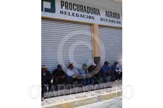 CHILPANCINGO, GUERRERO, 07DICIEMBRE2007.- Ejidatarios de la comunidad de Carrizalillo munipio de Zumpango quienes mantienen un bloqueo en la entrada a la mina Los Filos, se apostaron afuera de las oficinas de la Procuraduria Agraria en la capital del estado, para exigir el cambio del comisariado de bienes comunales y ejidales. FOTO: OSCAR ALVARADO/CUARTOSCURO.COM