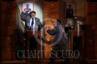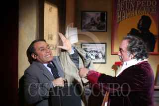 MÈXICO, D.F. 07FEBRERO2007.- El actor Juan Manuel Bernal debutò en la Obra Los Productores interpretando el papel de Leo Bloom. En la imagen con el actor Pedro Armendaris durante la funciòn. FOTO: PAOLA HIDALGO/CUARTOSCURO.COM