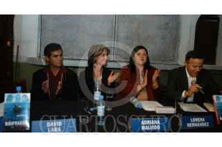 MÉXICO D.F. 07FEBRERO2007.- La periodista Adriana Malvido presento su más reciente libro ¨ Los náufragos de San Blas ¨ . La autora narro en un video su presentación del libro que realizo en San Blas, Nayarit. FOTO: GERMÁN ROMERO/CUARTOSCURO.COM