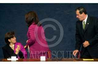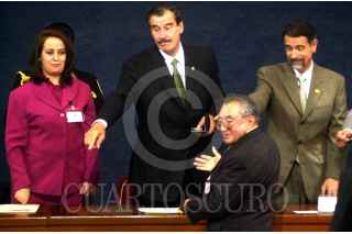 "A alguien se le cayó su medalla", dijeron el presidente Fox y el secretario del Trabajo, Carlos Abascal Carranza. FOTO: Pedro Mera/CUARTOSCURO.COM