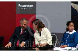 MÈXICO, D.F. 08FEBRERO2007.- Rafael Ochoa Guzman, Secretario del SNTE y Josefina Vazquez Mota durante la entrega de reconocimientos a alumnos que obtubieron promedios altos en la prueba enlaces. FOTO: PAOLA HIDALGO/CUARTOSCURO.COM