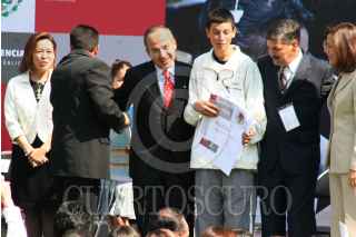 MÈXICO, D.F. 08FEBRERO2007.- En la Residencia Oficial de Los Pinos, el presidente Felipe Calderòn Hinojosa entregò reconocimientos a los alumnos que obtuvieron los promedios màs altos en la prueba enlaces. FOTO: PAOLA HIDALGO/CUARTOSCURO.COM