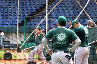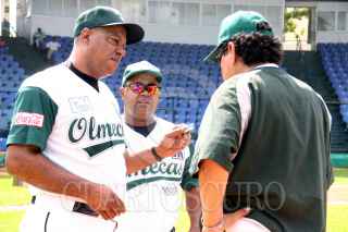 VILLAHERMOSA, TABASCO, 08FEBRERO2007.- El manager de los Olmecas de Tabasco; Orlando Sánchez da indicaciones a parte del cuerpo técnico de cómo se debe efectuar la rutina del día. FOTO: MARCO POLO GUZMÁN HERNÁNDEZ/CUARTOSCURO.COM