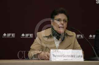 MÉXICO D.F. 9ENERO2007.- Teresa Gonzáles Luna consejera electoral y presidenta de la Comicion Electoral y Educación Cívica y el Dr.Ricardo Raphael, analista político, presentarón el informe del programa Educación para el Ejercicio del Voto Libre y Razonado, en el que se habló sobre los logros obtenidos en el pasado ejercicio electoral. FOTO: ROSA MALDONADO/CUARTOSCURO.COM
