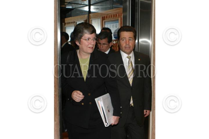 MÉXICO, D.F., 09FEBRERO2007.- La gobernadora de Arizona Janet Napolitano saluda al gobernador de Sonora Eduardo Bours durante una gira de trabajo por la ciudad de México, donde dicha funcionaria se entrevisto con diversos secretarios de estado. FOTO: SAÚL LÓPEZ/CUARTOSCURO.COM