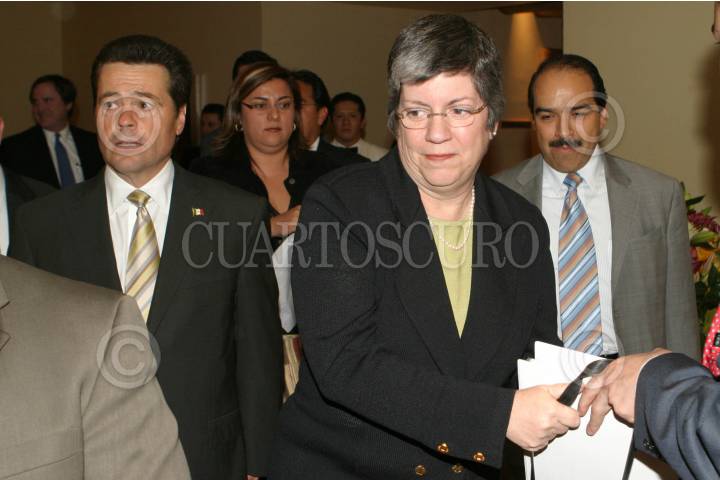MÉXICO, D.F., 09FEBRERO2007.- La gobernadora de Arizona Janet Napolitano saluda al gobernador de Sonora Eduardo Bours durante una gira de trabajo por la ciudad de México, donde dicha funcionaria se entrevisto con diversos secretarios de estado. FOTO: SAÚL LÓPEZ/CUARTOSCURO.COM