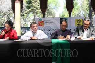 MÉXICO, D.F., 17FEBRERO2007.- Acompañado por Dolores Padierna, secretaria de Planeación del PRD, el delegado de Cuauhtémoc, José Luis Muñoz Soria, y el diputado Agustín Guerrero, el secretario de Hacienda Pública del gobierno legítimo, Mario Di Costanzo, ofreció una conferencia en el quiosco Morisco. FOTO: ISAAC ESQUIVEL/CUARTOSCURO.COM