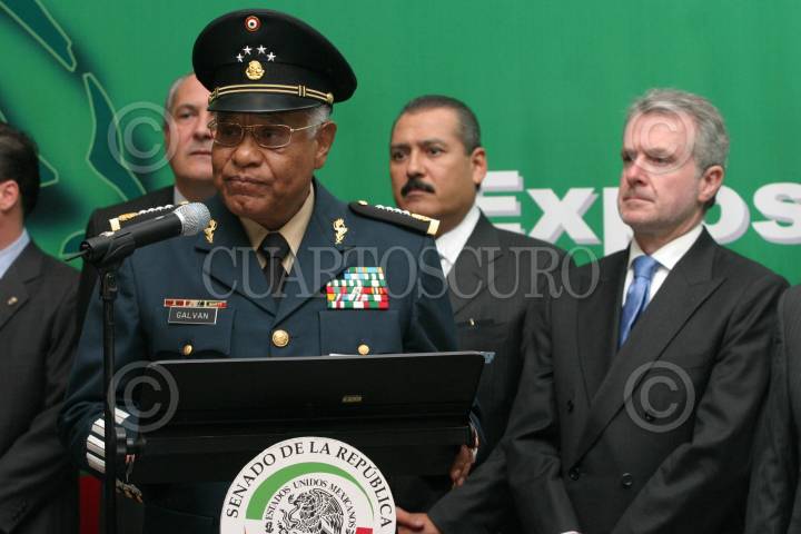 MÉXICO, D.F., 20FEBRERO2007.- Guillermo Galván Galván, Secretario de Defensa, realizó un recorrido por la reciente inaugurada exposición "Un Ejercito para un país en paz" en el Senado de la República. FOTO: MOISÉS PABLO/CUARTOSCURO.COM