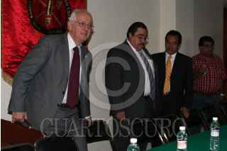 MÈXICO, D.F. 21FEBRERO2007.- Se llevò a cabo una conferencia de prensa en el sindicato de mineros en la que sindicatos mineros de distintos paises afirmaron el apoyo a Napoleòn Gòmez Urrutia, lider del SNTMMSRM. En la imagen el secretario general de la FITIM Marcello Malentacci, procedente de Suiza. FOTO: PAOLA HIDALGO/CUARTOSCURO.COM
