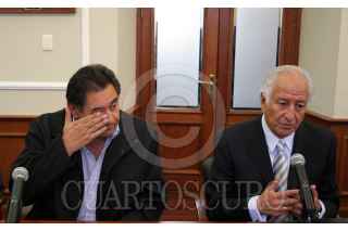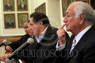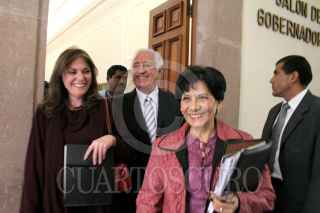 SAN LUIS POTOSI, SAN LUIS POTOSI 21FEBRERO2007.- El gobernador del estado Marcelo de los Santos Fraga al termino de la reunion con el coordinador Nacional del Programa Oportunidades, Salvador Escobedo Zoletto. FOTO: AARON CADENA OVALLE/CUARTOSCURO.COM