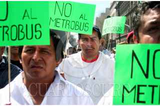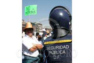 MÉXICO, D.F. 28FEBRERO2007.- En el zócalo capitalino un centenar de microbuseros de la zona oriente, se manifestaron en contra de la construcción del Metrobus en el eje 4 sur. FOTO: JEFTÉ ARGUELLO/CUARTOSCURO.COM