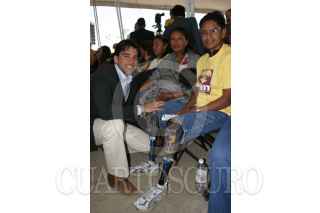CD. NEZAHUALCOYOTL. EDOMEX, 28FEBRERO2007.- Niños con capacidades diferentes y voluntarios estuvieron presentes en la ceremonia de la puesta de piedra del nuevo Centro de Rehabiltación Teletón. FOTO: SAÚL LÓPEZ/CUARTOSCURO.COM