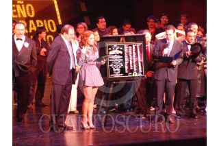 MÉXICO D.F. 01MARZO2007.- Angelica Vale y Carlos Loret fueron los padrinos de la placa de la develación de las 100 representaciones de la obra ¨Los productores¨. FOTO: ELENA MENDOZA/OCESA/CUARTOSCURO.COM