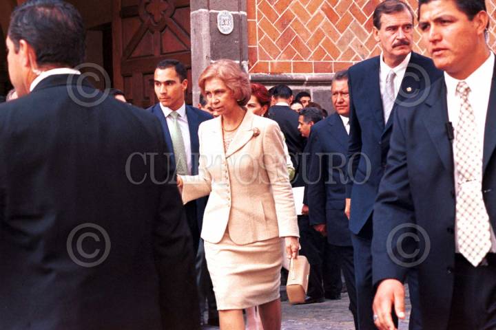 La Reina Sofía de España y el presidente Vicente Fox al termino de una comida con delegados que asisten a la Cumbre de Micro Crédito para América Latina y el Caribe. FOTO: Oswaldo Ramírez/CUARTOSCURO.COM