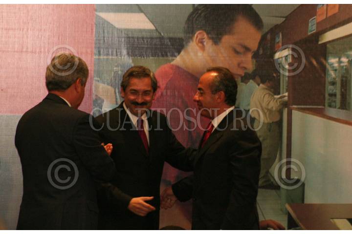 MÈXICO, D.F. 06MARZO2007.- El presidente Felipe Calderòn Hinojosa, José Natividad González Parás, gobernador del estado de Nuevo León y Agustìn Carstens, titular de la secretarìa de Hacienda y Crèdito Pùblico durante la presentaciòn del programa de modernizaciòn de los registros pùblicos de la propiedad. FOTO: PAOLA HIDALGO/CUARTOSCURO.COM
