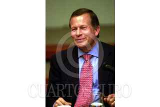 El gobernador del Estado de Hidalgo, Manuel Angel Nuñez Soto, durante la reunión que sostuvieron el secretario de Gobernación, Santiago Creel Miranda y para tratar el tema del aeropuerto alterno de la Ciudad de México. FOTO: Pedro Mera/CUARTOSCURO.COM