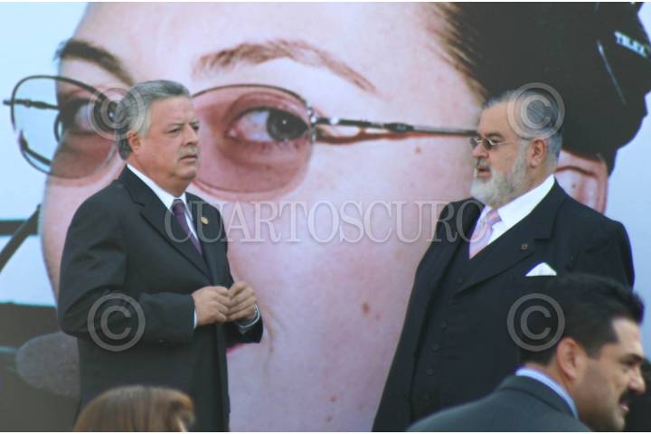 MÉXICO D.F. 08MARZO2008.- Jorge Zermeño, presidente de la mesa directiva de la cámara de diputados conversa con José Luis Soberanes, presidente la CNDH, durante la ceremonia de conmemoración del Día Internacional de las Mujeres y la firma del acuerdo nacional para la igualdad de hombres y mujeres. FOTO: PAOLA HIDALGO/CUARTOSCURO.COM