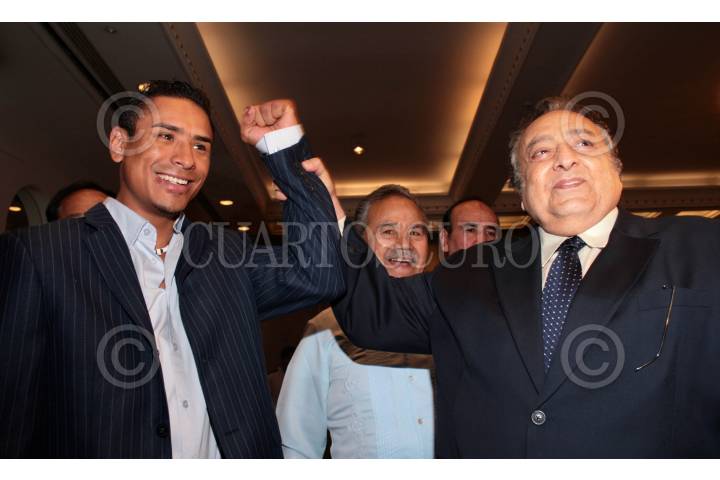 MÉXICO D.F. 08MARZO2007.- El expugilista Raúl "Ratón" Macías, felicita al actual campeón mundial del titulo Super Gallo, Rafael Márquez. FOTO: JEFTÉ ARGUELLO/CUARTOSCURO.COM