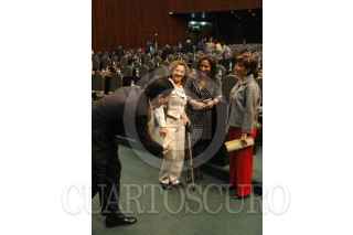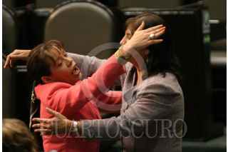 MÉXICO, D.F., 08MARZO2007.- Las diputadas Obdulia Castillo Romero y Lucía Del Carmen Morgan, se felicitan por la celebración del Día Internacional de la Mujer, durante la sesión en la Cámara de Diputados. FOTO: MOISÉS PABLO/CUARTOSCURO.COM