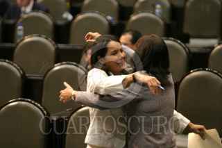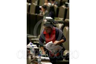 MÉXICO, D.F., 08MARZO2007.- Una mujer encargada de la limpieza de las curules de la Cámara de Diputados realiza su labor durante la sesión en la Cámara de Diputados. FOTO: MOISÉS PABLO/CUARTOSCURO.COM