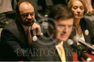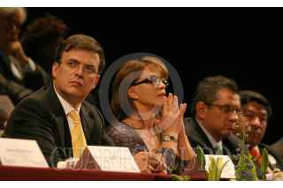 MÉXICO, D.F., 08MARZO2007.- El jefe de gobierno Marcelo Ebrard acompañado de su gabinete formalizarón la firma del "Decalogo por la equidad de genero" realizado en el Teatro de la Ciudad de México. Una trabajora observa el evento. FOTO: SAÚL LÓPEZ ESCORCIA/CUARTOSCURO.COM