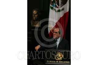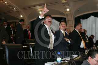 MÉXICO, D.F., 08MARZO2007.- En la Cámara de senadores se llevó a cabo la sesión ordinaria donde se rechazó la designación de Carlos Hurtado en el Banco de México. En la imagen, legisladores Ricardo Monreal y Carlos Navarrete esperan el resultado de las votaciones. FOTO: PAOLA HIDALGO/CUARTOSCURO.COM