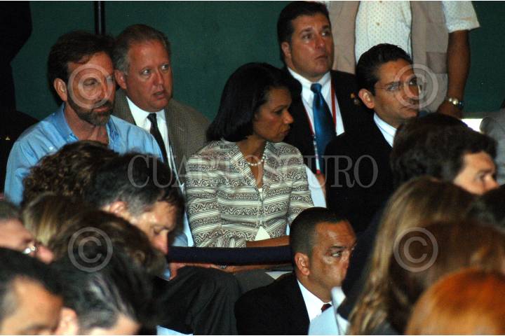 MÉRIDA YUCATÁN 14MARZO2007.- Integrantes de ambos gabinetes asistieron a la conferencia de los presidentes George W. Bush de los Estados Unidos y Felipe con la cual concluye la reunión bilateral de los mandatario, entre ellos Tony Garza Condilizza Rice, Juan Camilo Muriño y Arturo Sarukan. FOTO: GUILLERMO PEREA/CUARTOSCURO.COM