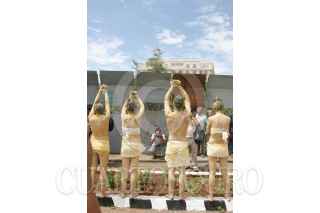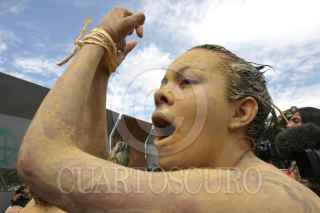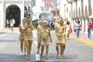 MÉRIDA, YUCATÁN, 14MARZO2007.- Se realizó una manifestacion de la Plaza Grande al Fiesta Americana, donde horas antes hubo una rueda de prensa por parte de los presidentes de México, Felipe Calderon, y de Estados Unidos, George W. Bush. Los manifestantes representaban a los antiguos Mayas y gritaban "Wey Yanno Nee", que en lengua maya quiere decir "aquí estamos". FOTO: KAHYRI RASHID/CUARTOSCURO.COM