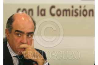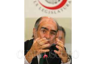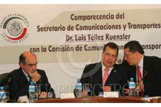 MEXICO, D.F. 14MARZO2007.- Luis Tellez, secretario Comunicaciones y Transportes y el senador Angel Heladio Aguirre previo a la comparecencia ante la comisión de Comunicaciones y trasportes en el senado de la República. FOTO: NELLY SALAS/CUARTOSCURO.COM