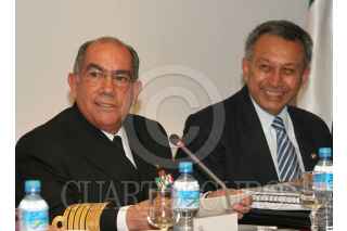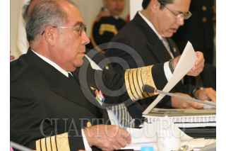 MEXICO, D.F. 14MARZO2007.- Mariano Saynes Mendoza, secretario de Marina y el senador Sebastián Calderón durante la reunión de trabajo con la comisión de Marina en el senado de la República. FOTO: NELLY SALAS/CUARTOSCURO.COM