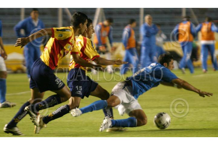MÉXICO, D.F., 14MARZO2007.- Salvador Carmona, jugador del Cruz Azul se disputa un balón con un defensa de los Monarcas de Morelia, durante el juego de entre ambas escuadras en el estadio Azul. FOTO: MOISÉS PABLO/CUARTOSCURO.COM