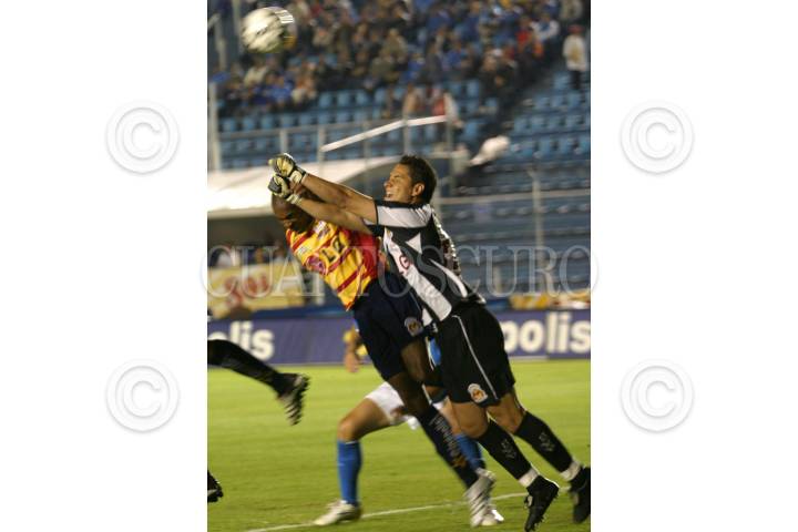 MÉXICO, D.F., 14MARZO2007.- Salvador Carmona, jugador del Cruz Azul se disputa un balón con un defensa de los Monarcas de Morelia, durante el juego de entre ambas escuadras en el estadio Azul. FOTO: MOISÉS PABLO/CUARTOSCURO.COM
