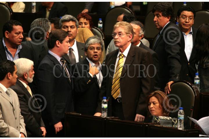 MÉXICO D.F. 15MARZO2007.- El coodinador de la fracción perredista Javier González Garza, y la bancada perredista duante la sesión. FOTO: JEFTÉ ARGUELLO/CUARTOSCURO.COM