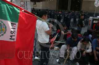 MÉXICO, D.F., 19MARZO2007.- Simpatizantes de la APPO organizaron una protesta por el desalojo del campamento que los appistas tenían desde hace meses sobre la calle de Tacuba en el Centro Histórico, en demanda a la liberación de los llamados presos políticos detenidos durante los enfrentamientos en Oaxaca. El desalojo se realizo cerca de las 2:00 a.m. por granaderos de la SSP, se colocaron rejas para impedir el paso peatonal sobre la calle. FOTO: EZEQUIEL TLAXCALA/ CUARTOSCURO.COM