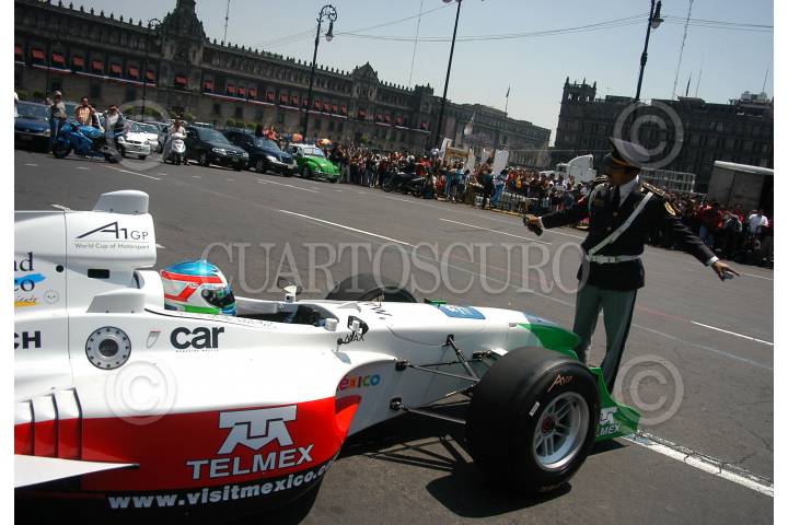MÉXICO D.F. 19MARZO2007.- El piloto mexicano Salvador Duran, es impedido para realizar los trompos al frente de la Catedral Metropolitana por un elemento de la secretaria de seguridad pública. FOTO: GUILLERMO PEREA/CUARTOSCURO.COM