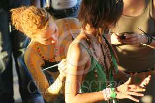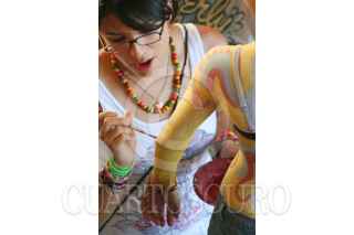 TAJIN,VERACRUZ 19MARZO2007.- Dentro del marco del Festival de la identidad "Cumbre Tajin 2007" se realizan talleres para los visitantes el body painting es uno de los mas concurridos por los jovenes que gozan de los eventos que ofrece la Cumbre Tajin. FOTO: CARLOS TISCHLER/ CUARTOSCURO.COM
